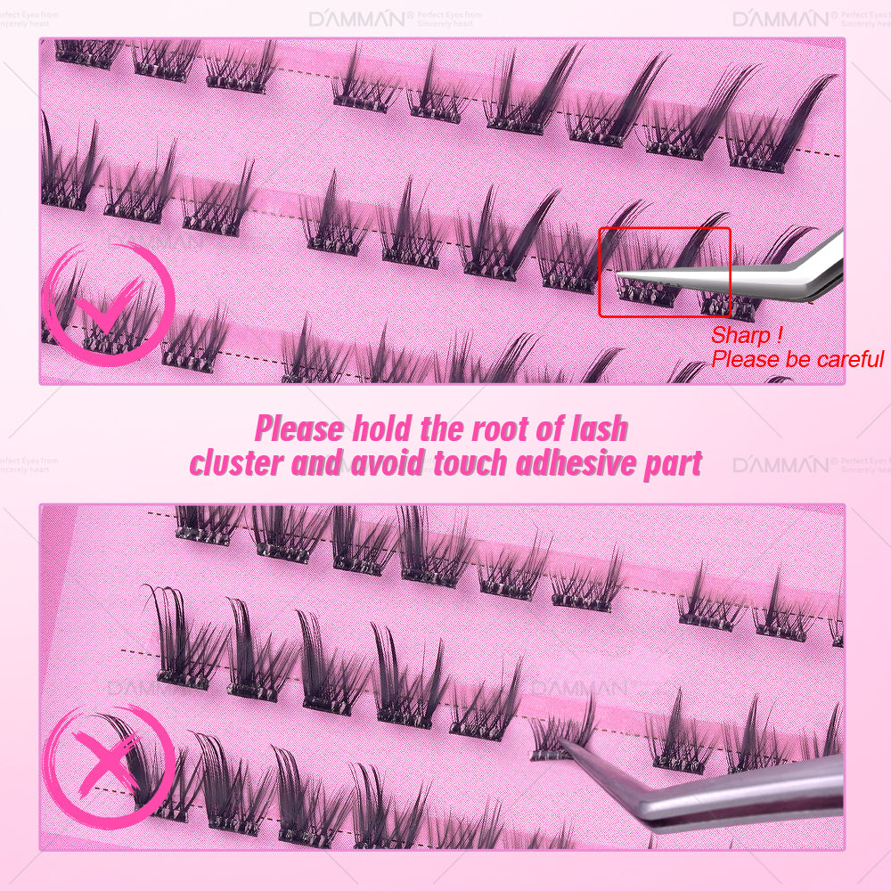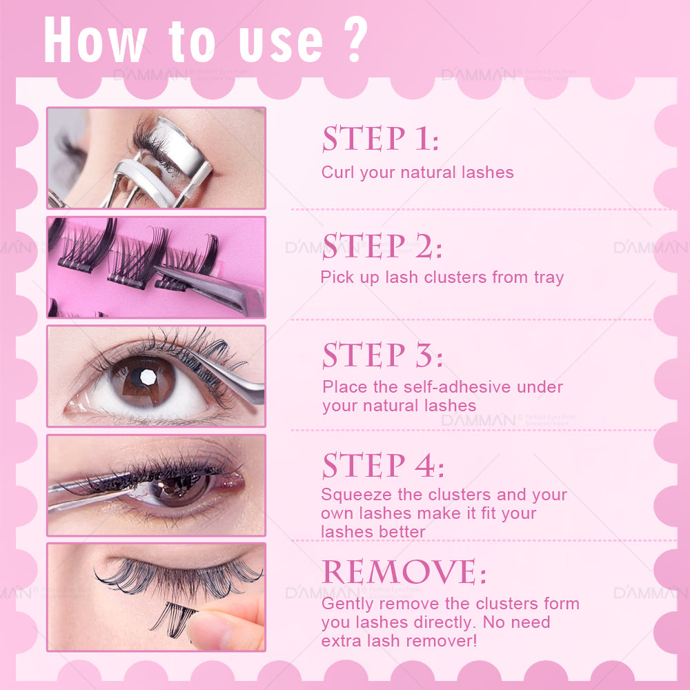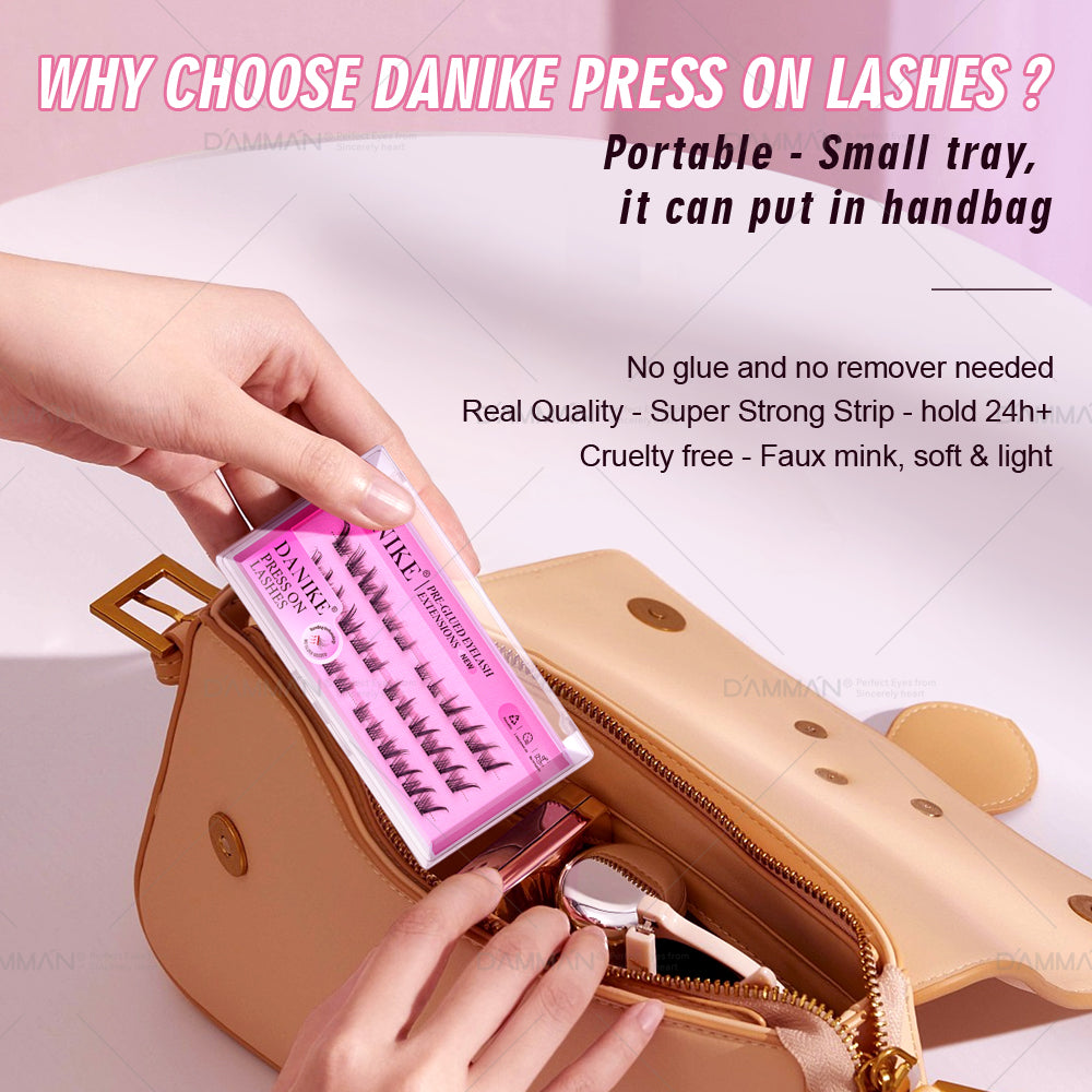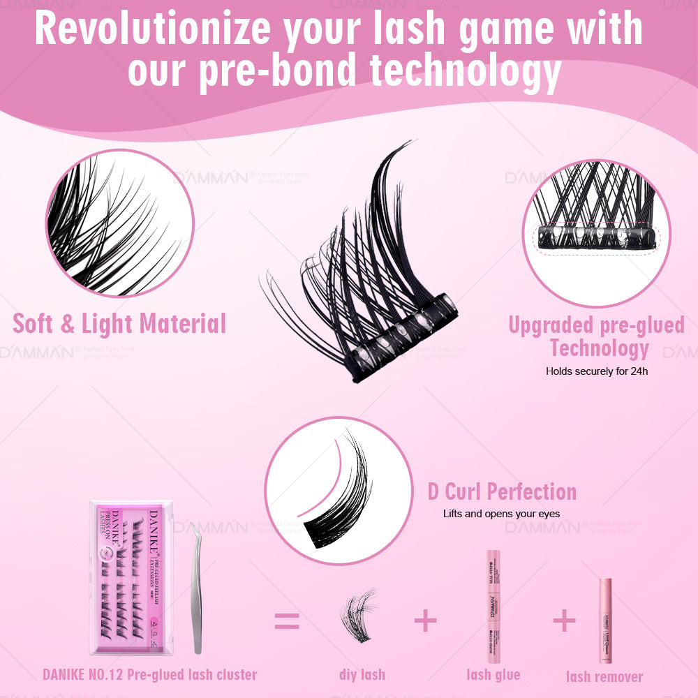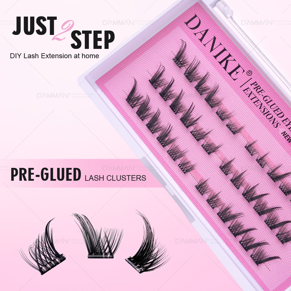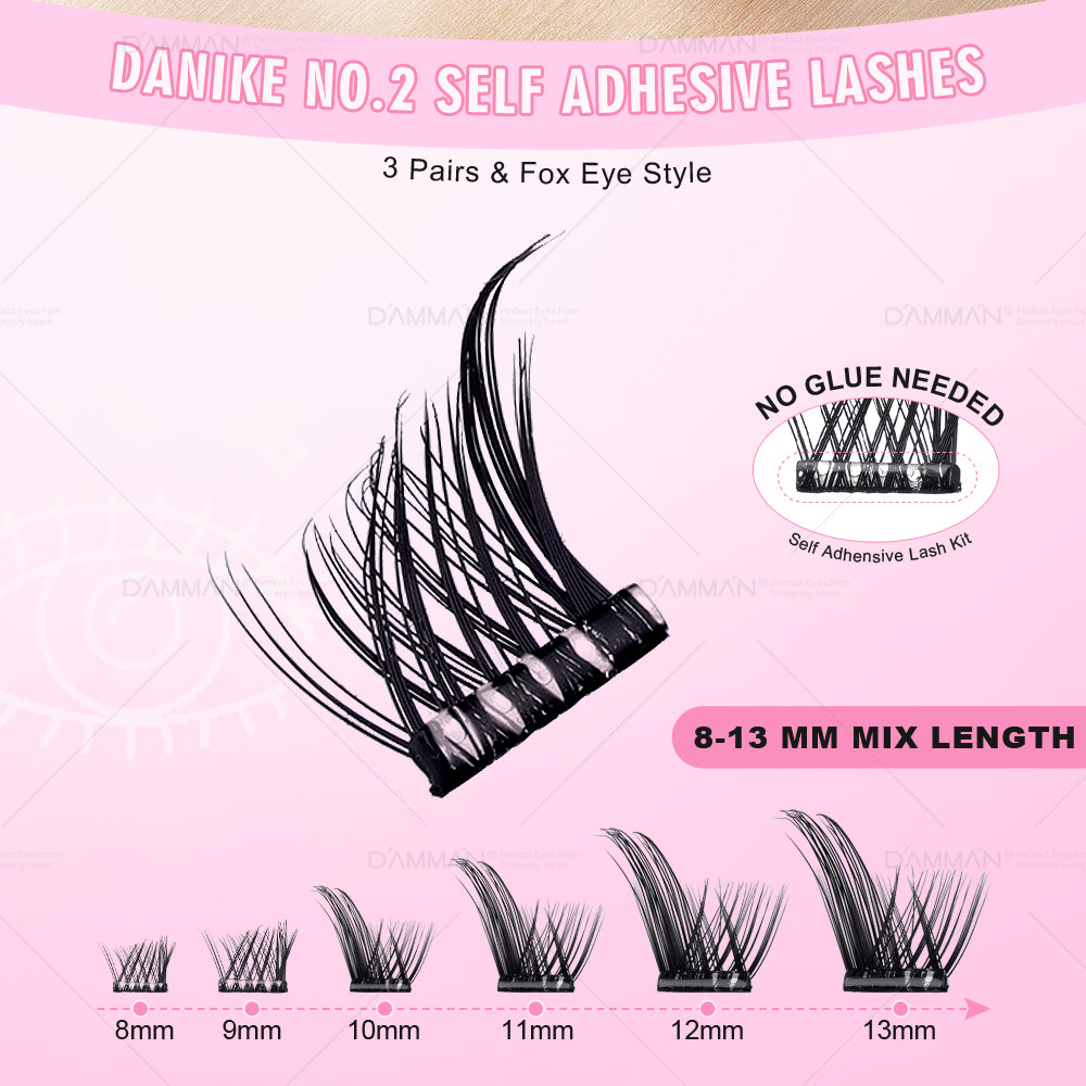 DANIKE NO.2 Self Adhesive Cluster Lashes Mix Length D Curl Press On Lashes Cluster Waterproof Pre Glue Faux Mink False Eyelashes Clusters with Tweezers