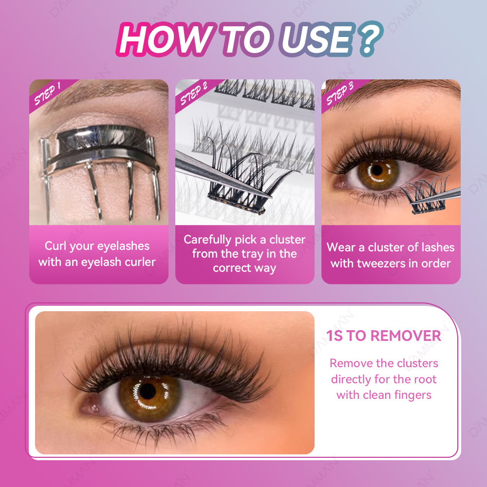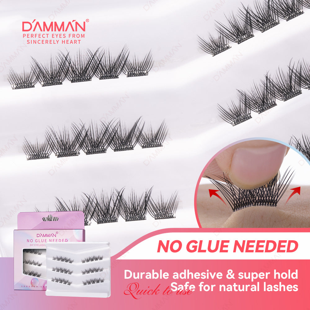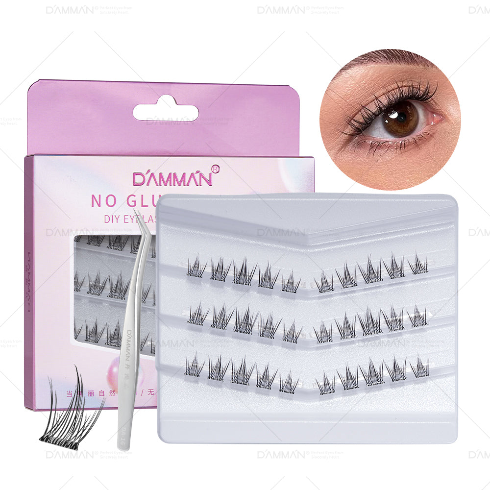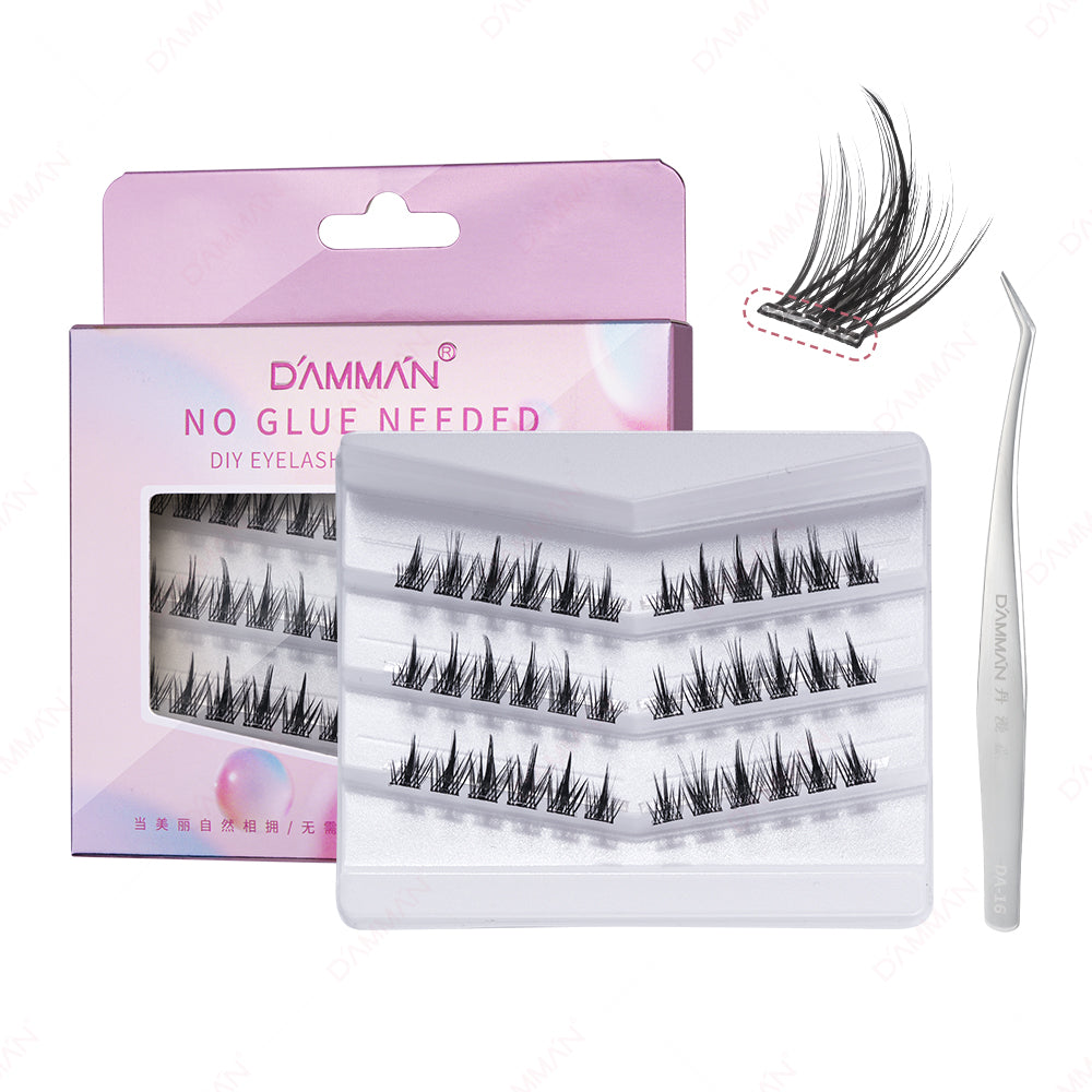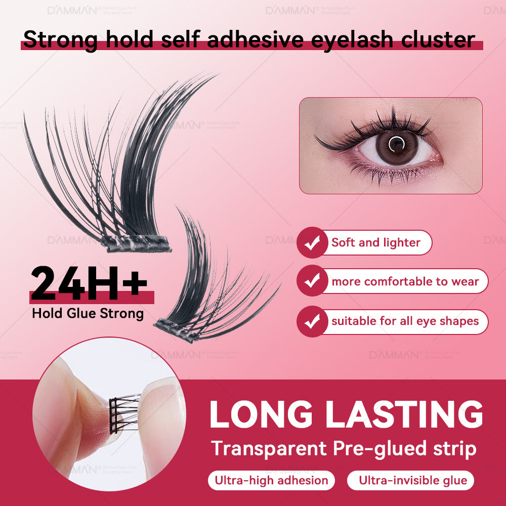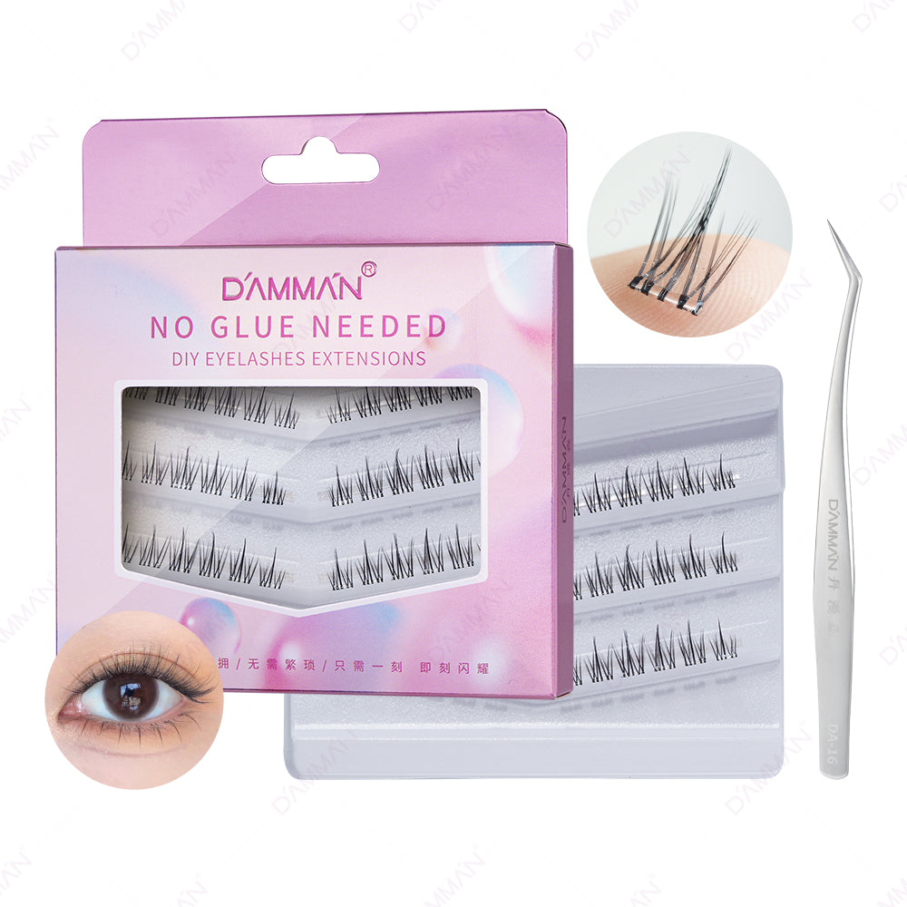 DAMMAN Press On Lash Cluster with tweezers (Self-adhesive Lash Cluster- NO Glue Need Lashes)