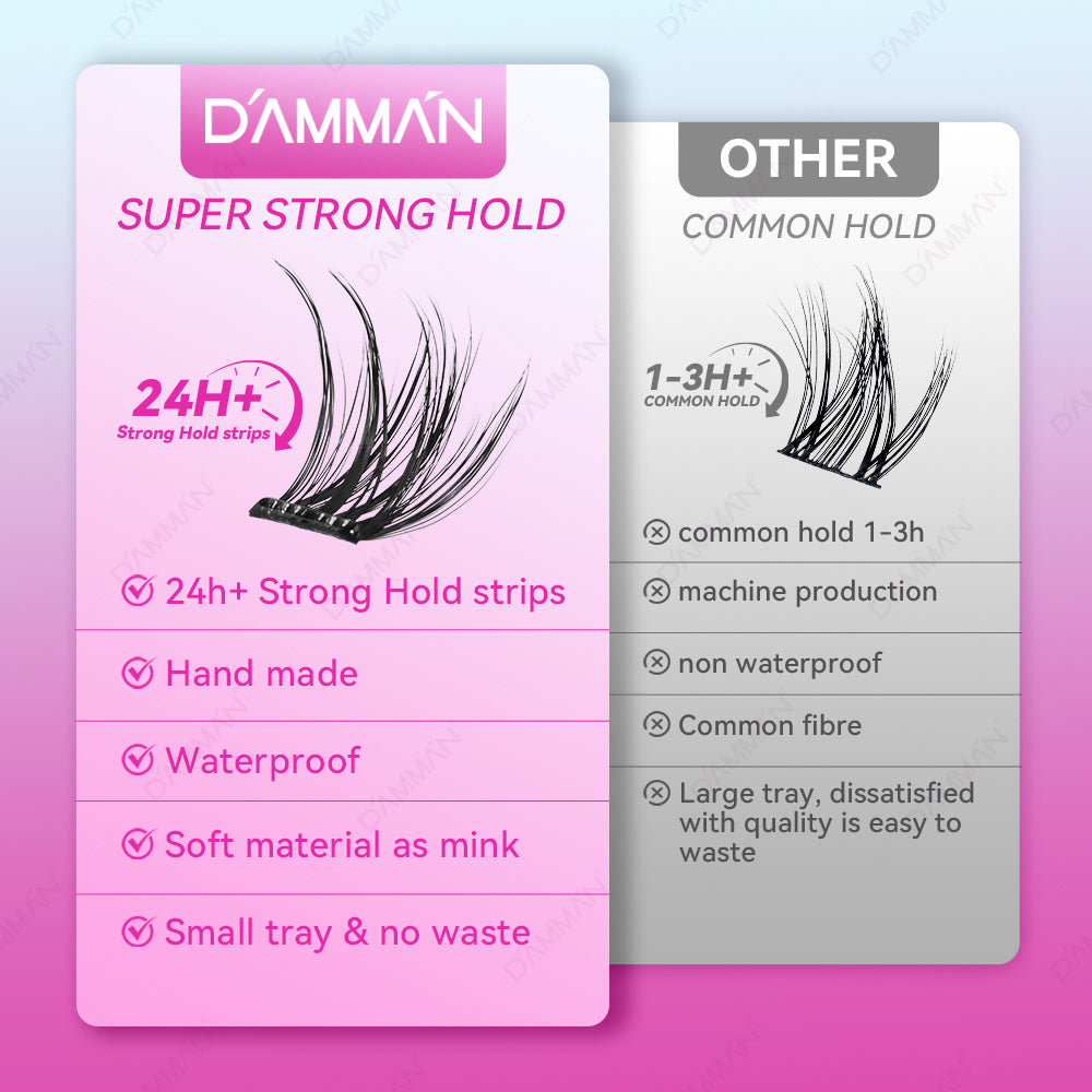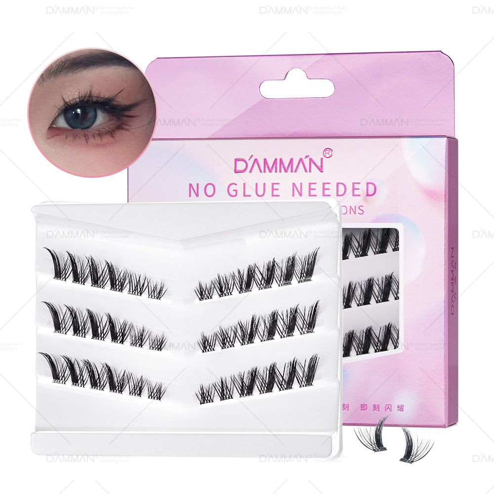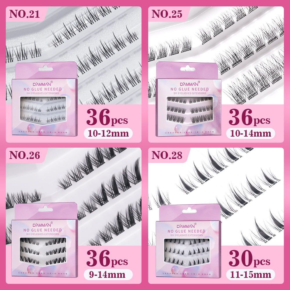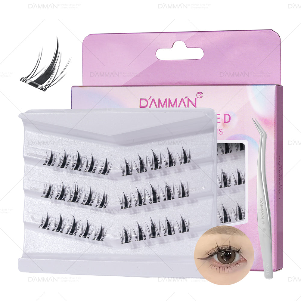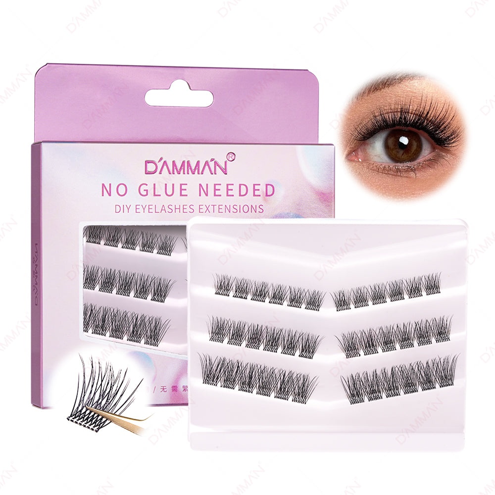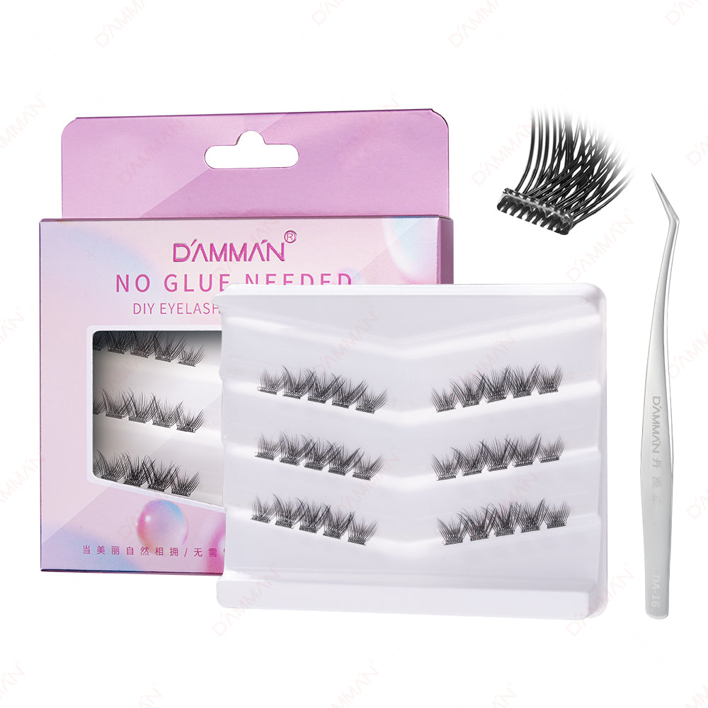 DAMMAN Press On Lash Cluster with tweezers (Self-adhesive Lash Cluster- NO Glue Need Lashes)