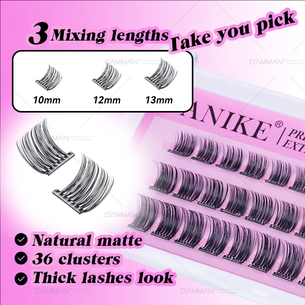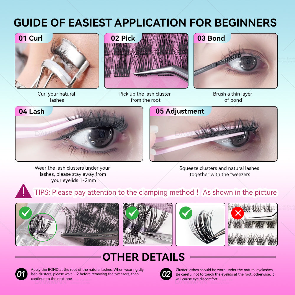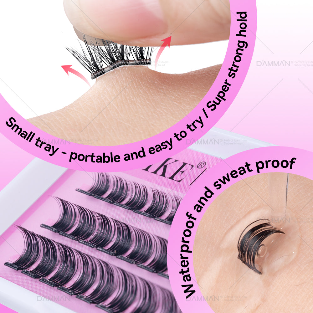 No Glue Needed False Eyelash Mix Length D Curl Glueless Eyelash Cluster Pre Bonded DIY Lashes Cluster