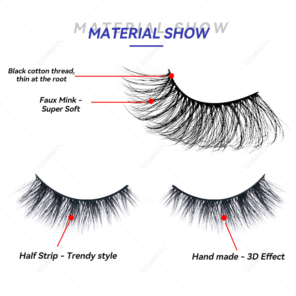 DAMMAN 3D Faux Mink Half Strip Eyelash - Cat Eyes