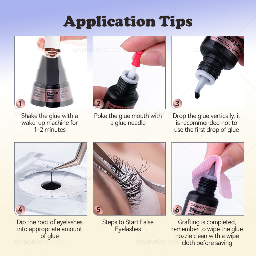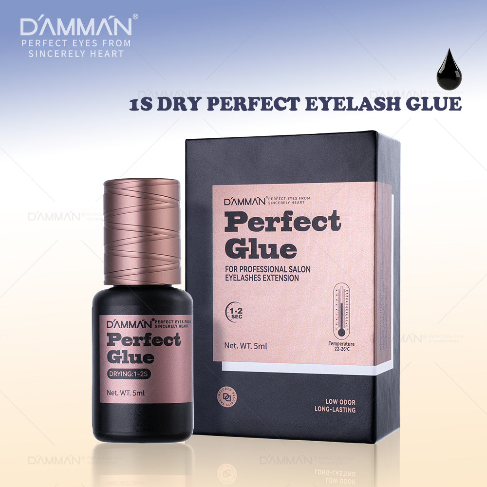 DAMMAN Perfect Glue for Professional Eyelash Extensions 5ml 1-2s Drying Lash Extension Glue Long Lasting 8-10 Weeks Balack Lash Adhesive