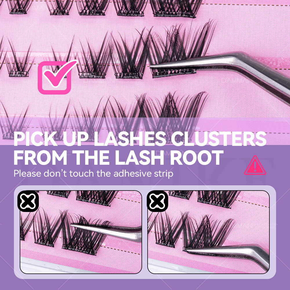 Glue Free Remover Free DIY Lash Clusters D Curl Mix Length 3 Pairs Self Adhesive Eyelash Clusters Wide Band Press On Lash Cluster with Tweezers