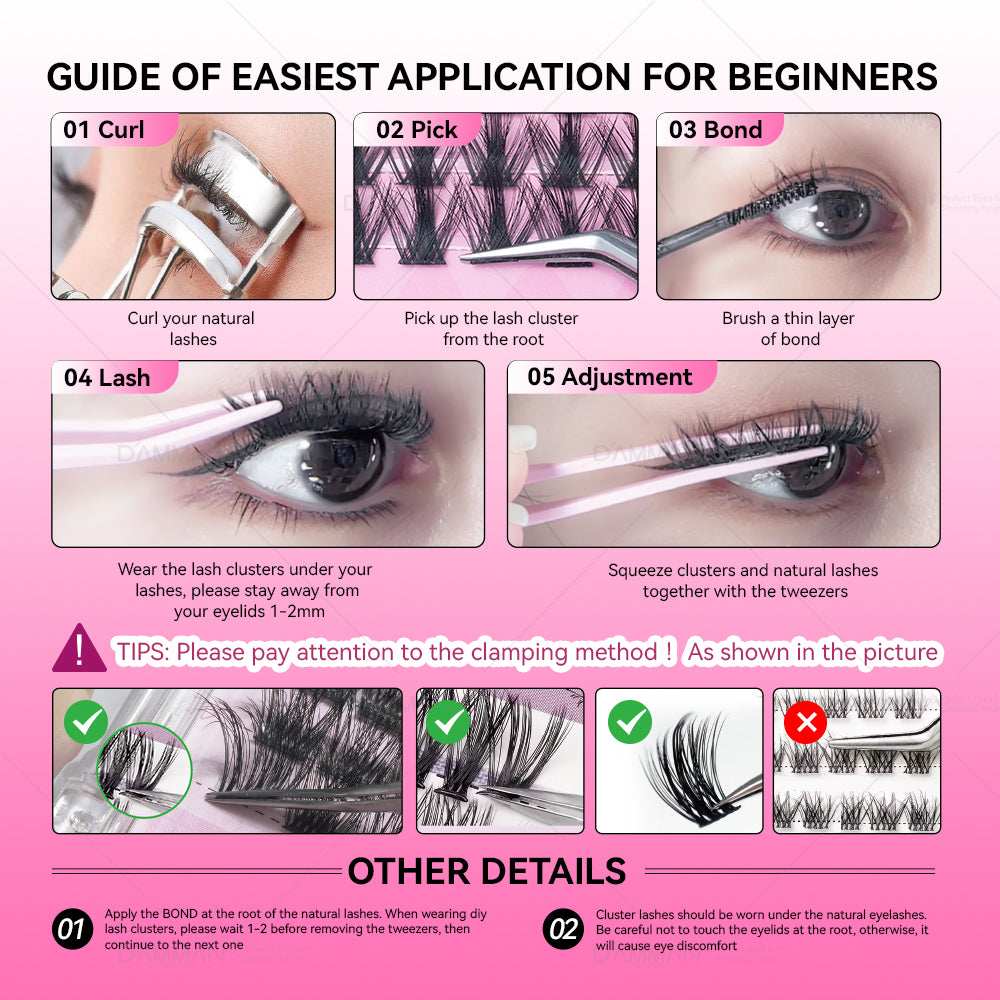 6D Lash Clusters Mix Length Individual Eyelashes Extension D Curl Lightweight Volume Cluster Lashes DIY at Home Lash Extensions